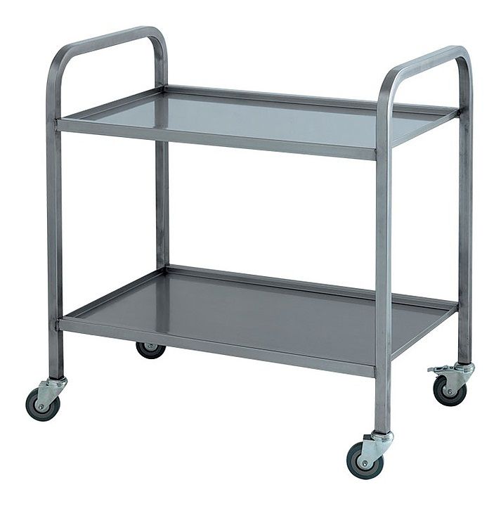 Сервировочная тележка ITERMA ТC-3/2 используется на предприятиях общественного питания и торговли для сервировки обеденных залов, а также для сбора и перевозки грязной посуды. Модель оснащена 2 полками и 4 поворотными колесами, 2 из которых оборудованы тормозами. Выполнена из нержавеющей стали.