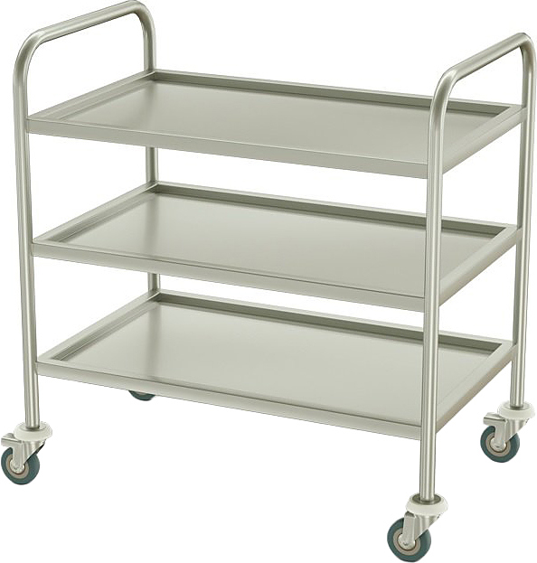 Сервировочная тележка ATESY ТС-С-3-800.500.850-02 серии Стандарт используется на предприятиях общественного питания и торговли для перемещения различных блюд, напитков и столовой посуды. В модели предусмотрены вместительные полки с бортиками и колесики. Материал полок - нержавеющая сталь AISI 430, материал рамы - нержавеющая труба AISI 201 (диаметр 25 мм).