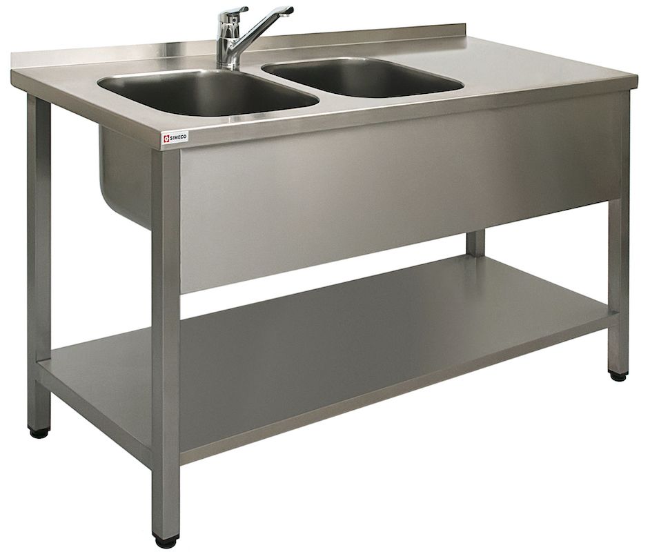 Simeco ВМ2EЛ1506П используется на предприятиях общественного питания и торговли для мытья и ополаскивания продуктов, посуды и различного инвентаря. Модель оснащена фартуком, нижней сплошной полкой, задним бортиком 40 мм и регулируемыми по высоте ножками, что позволяет компенсировать неровности пола. Сварной каркас выполнен из трубы 40х40 мм, мойки цельнотянутые - из нержавеющей стали AISI 304 толщиной 1 мм, выпуск - из нержавеющей стали.