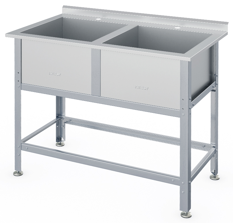 Моечная ванна ATESY ВСМ-Б-2.530-1-02 серии Бюджет используется на предприятиях общественного питания и торговли для мытья столовой и кухонной посуды, инвентаря, овощей и фруктов, а также для оттайки замороженных пищевых продуктов. Каркас выполнен из профиля из оцинкованной стали толщиной 1,2 мм, ванны - из нержавеющей стали AISI 430 толщиной 0,7 мм, опорная ножка - из пластика, опоры регуляторов высоты ножек - из нержавеющей стали.