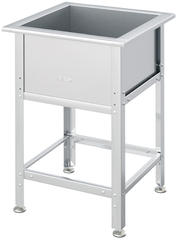 Моечная ванна ATESY ВСМ-С-1.700-02 серии Стандарт используется на предприятиях общественного питания и торговли для мытья столовой и кухонной посуды, инвентаря, овощей и фруктов, а также для оттайки замороженных пищевых продуктов. Каркас выполнен из профиля из оцинкованной стали толщиной 1,2 мм, ванна - из нержавеющей стали AISI 304 толщиной 0,8 мм, опоры регуляторов высоты ножек - из нержавеющей стали.