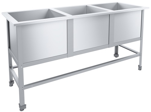 Моечная ванна Пищевые Технологии Стандарт НК ВМО3-430СНК-М используется на предприятиях общественного питания и торговли для мытья посуды, кухонных принадлежностей и продуктов. Модель оснащена отверстием для установки выпускного сифона и регулируемыми по высоте ножками. Каркас выполнен из нержавеющего уголка, емкость - из нержавеющей стали AISI 430.