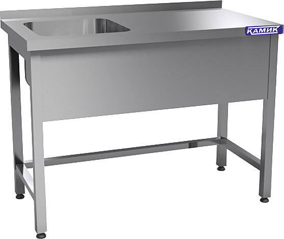 Моечная ванна КАМИК ВМ-1-40127 используется на предприятиях общественного питания и торговли для мойки посуды, овощей и фруктов. Сварной каркас и столешница выполнены из нержавеющей стали AISI 430, цельнотянутая емкость - из нержавеющей стали AISI 304.
