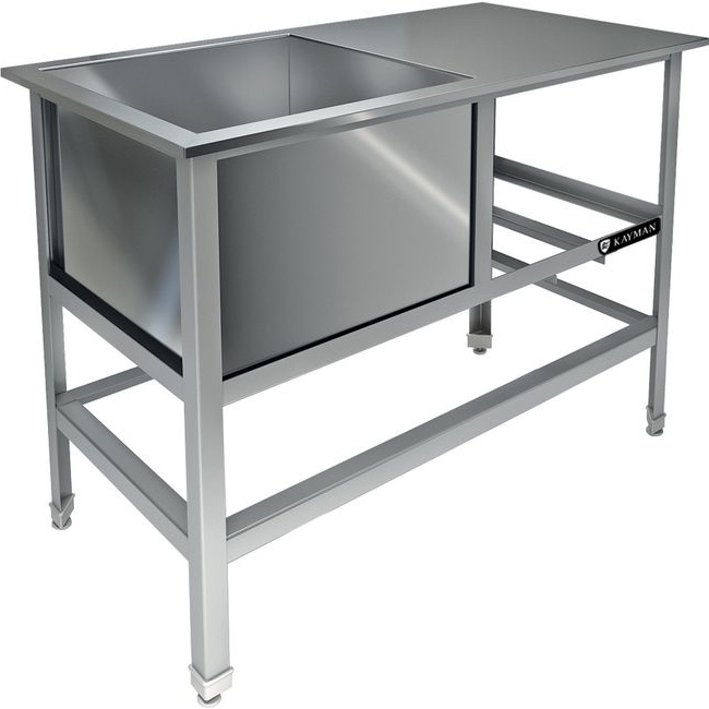Моечная ванна KAYMAN ВМ-314/800 Л используется на предприятиях общественного питания и торговли для мойки продуктов питания, посуды и кухонных принадлежностей. Каркас выполнен из нержавеющего уголка AISI 430, емкость и рабочая поверхность - из нержавеющей стали AISI 304.