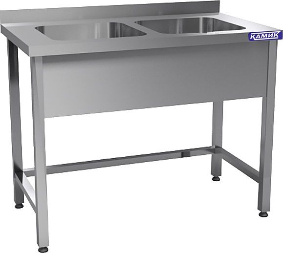 Моечная ванна КАМИК ВМ-2-40117 используется на предприятиях общественного питания и торговли для мойки посуды, овощей и фруктов. Сварной каркас и столешница выполнены из нержавеющей стали AISI 430, цельнотянутая емкость - из нержавеющей стали AISI 304.