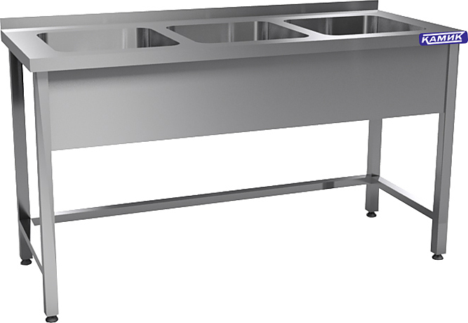 Моечная ванна КАМИК ВМ-Т3207 используется на предприятиях общественного питания и торговли для мойки посуды, овощей и фруктов. Сварной каркас выполнен из нержавеющей стали AISI 430, сварная емкость - из нержавеющей стали AISI 304.