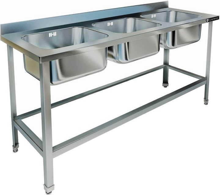 Моечная ванна KAYMAN ВМЦ-313/67 используется на предприятиях общественного питания и торговли для мойки продуктов питания, посуды и кухонных принадлежностей. Каркас выполнен из уголка из нержавеющей стали AISI 430, емкости - из нержавеющей стали AISI 304 толщиной 1 мм.