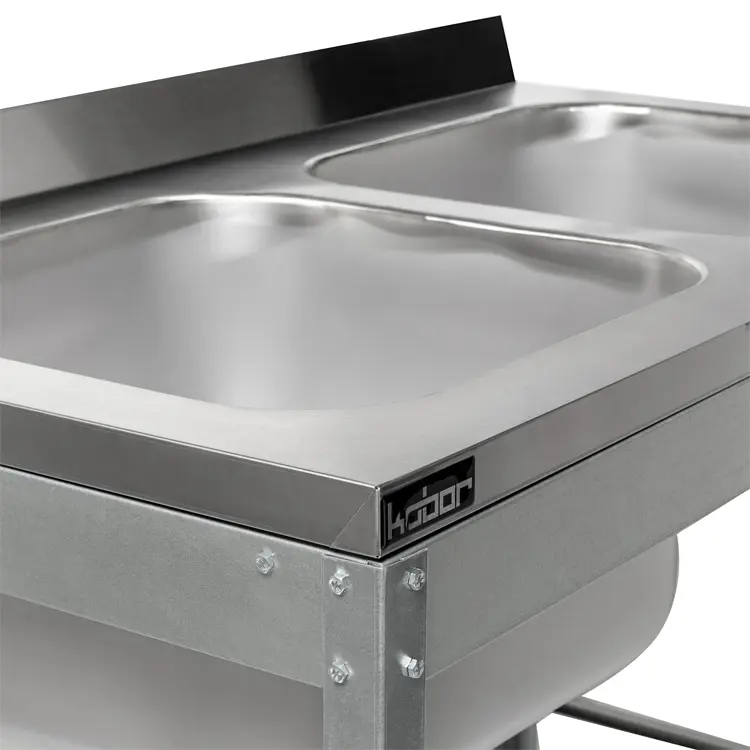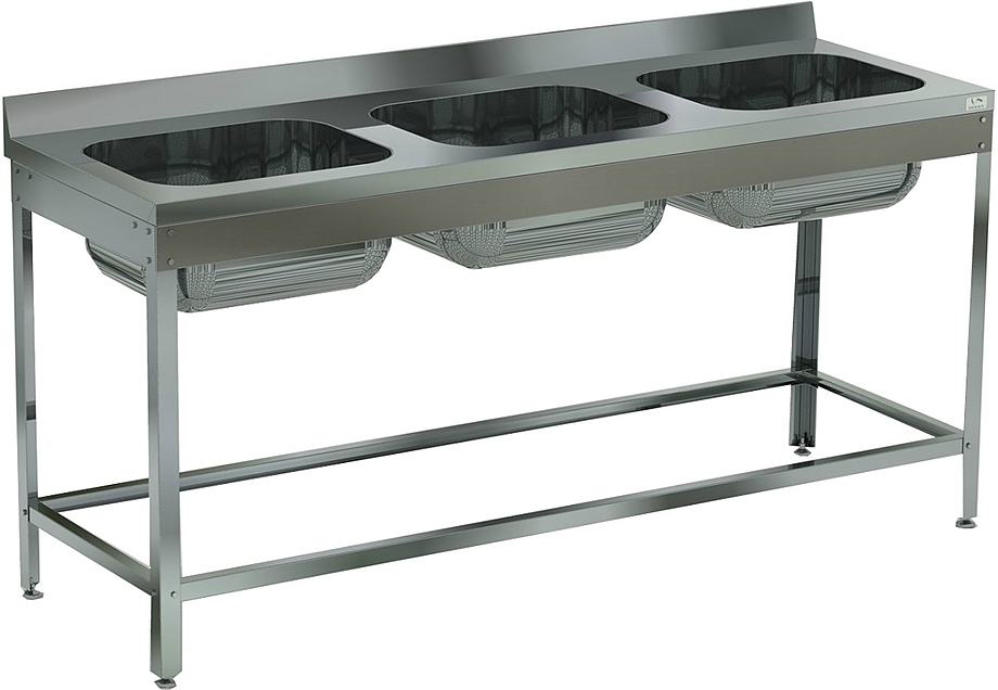 Емкость ванны Кобор ВМЦ/3-210/70/430 выполнена из высококачественной пищевой нержавеющей стали, имеет подогнутую кромку для предотвращения травмирования рабочего персонала. Ножки изготовлены в виде уголка 40х40 мм из оцинкованной стали и регулируются по высоте, что помогает избежать наклона рабочей поверхности. Во избежание попадания воды и грязи у ванной имеется борт высотой 70 мм.