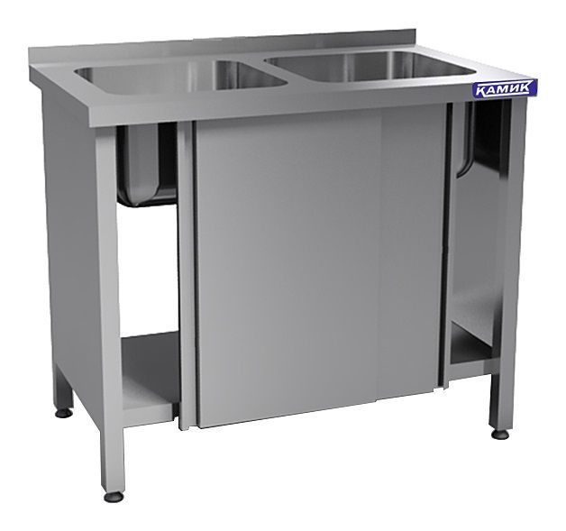 Моечная ванна КАМИК ВМ-2-411671 используется на предприятиях общественного питания и торговли для мойки посуды, овощей и фруктов. Сварной каркас и столешница выполнены из нержавеющей стали AISI 430, цельнотянутая емкость - из нержавеющей стали AISI 304.