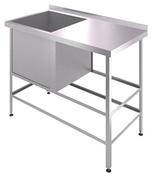 Моечная ванна Assum ВСРПБ-С-5/10-Л используется на предприятиях общественного питания и торговли для мойки продуктов, посуды и прочего кухонного инвентаря. Модель оснащена 1 раковиной, бортом, отверстием для смесителя и выпуском. Материал ванны и столешницы - нержавеющая сталь AISI 430, материал каркаса - оцинкованная сталь (уголок 40х40 мм), материал обвязки ног - оцинкованная сталь, материал опор ножек - пластик.