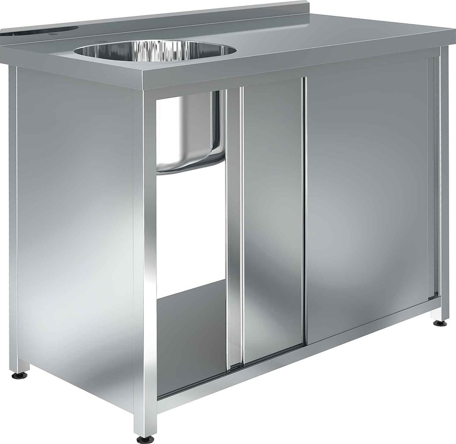 Моечная ванна Assum СПКБ-15/6-ВЛ4 серии Премиум используется на предприятиях общественного питания и торговли для мойки продуктов, посуды и прочего кухонного инвентаря. Модель оснащена 1 раковиной, бортом, дверями-купе, отверстием для смесителя и выпуском. Материал ванны - нержавеющая сталь AISI 304, материал столешницы - нержавеющая сталь AISI 430 с усилением ДСП, материал стенки, дверей и полки - нержавеющая сталь AISI 430, материал каркаса - нержавеющая сталь AISI 430 (труба 40х40 мм), материал опор ножек - пластик.