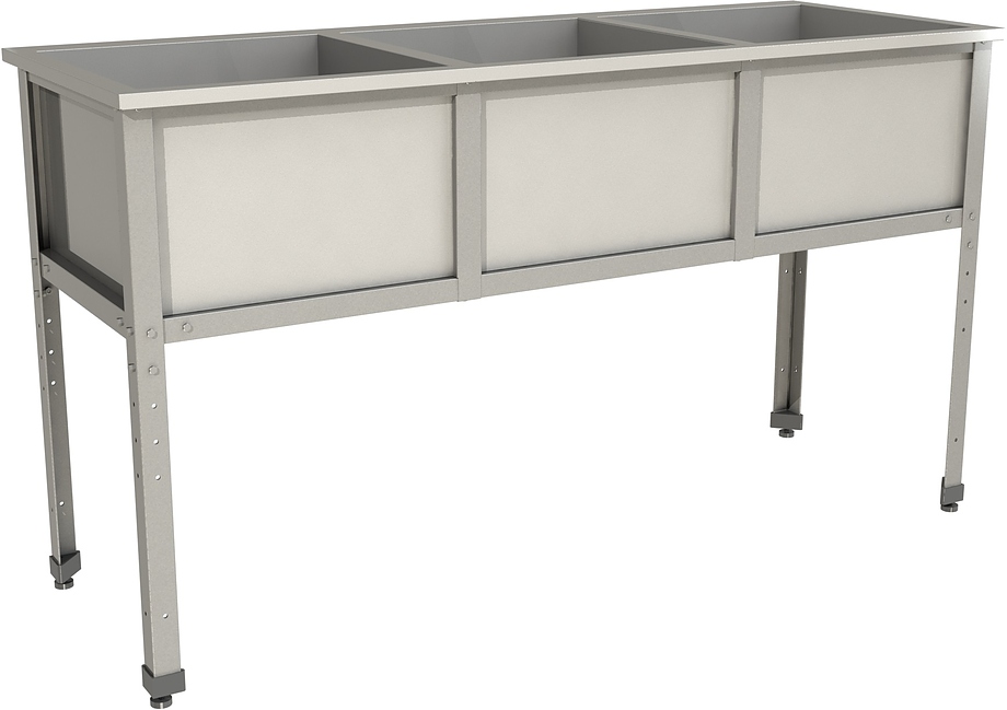 Моечная ванна Restoinox ВМС-3/5-ЭН предназначается для мытья посуды, кухонного инвентаря и продукции на предприятиях общественного питания, торговли и пищевых производствах. Материал каркаса - уголок из нержавеющей стали (40х40 мм), материал емкости - нержавеющая сталь AISI 430.