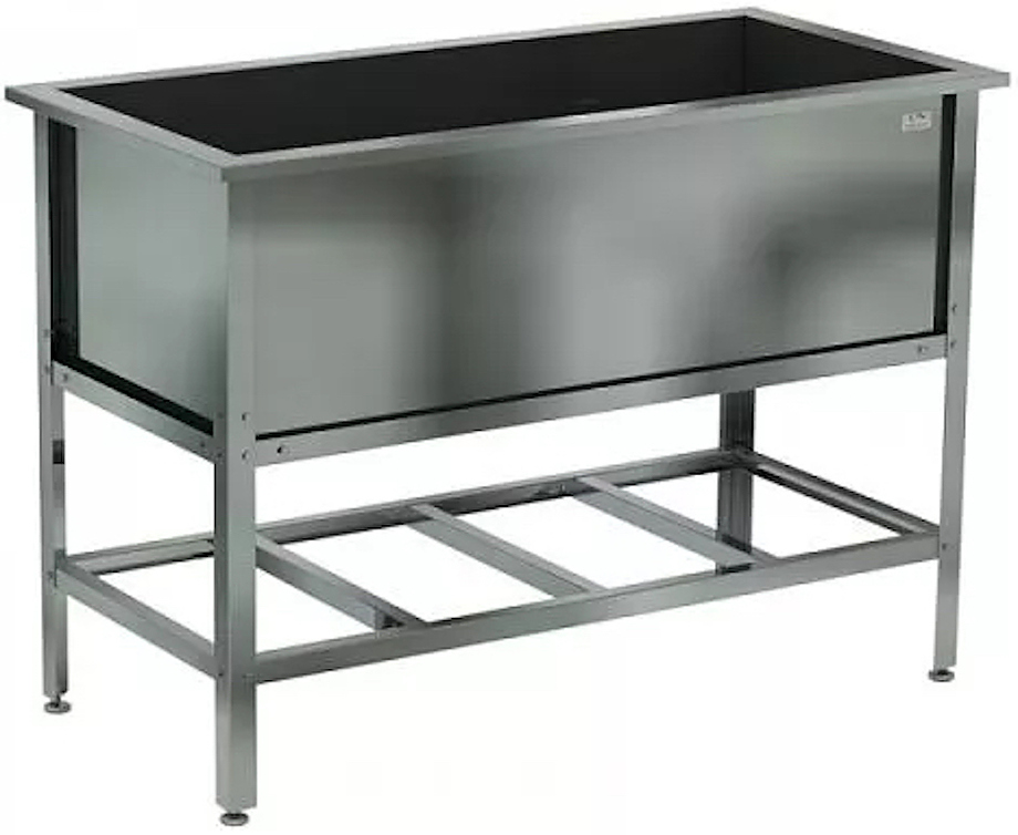 Емкость ванны Кобор ВМСБ/1-100/90/430 выполнена из высококачественной нержавеющей стали. Технология сварки швов ванны обеспечивает не только герметичность соединения, но и прочность конструкции. Ножки изготовлены в виде уголка 40х40 мм из оцинкованной стали и регулируются по высоте, что помогает избежать неустойчивости рабочей конструкции.