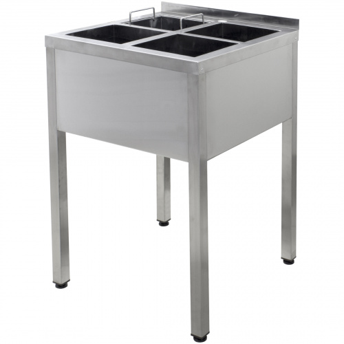 Моечная ванна Пищевые Технологии ВМОя-6/6-М предназначена для санитарной обработки яиц на предприятиях общественного питания, торговли и пищевых производствах. Модель оснащена отверстием для смесителя и регулируемыми ножками. Материал каркаса - высококачественная нержавеющая сталь (труба 40х40 мм), материал ванны - высококачественная нержавеющая сталь AISI 430, толщиной 0.8 мм.
