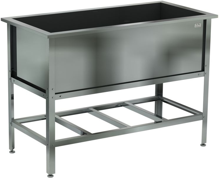Емкость ванны Кобор ВМС/1-100/53/430 выполнена из высококачественной нержавеющей стали. Технология сварки швов ванны обеспечивает не только герметичность соединения, но и прочность конструкции. Ножки изготовлены в виде уголка 40х40 мм из оцинкованной стали и регулируются по высоте, что помогает избежать неустойчивости рабочей конструкции.
