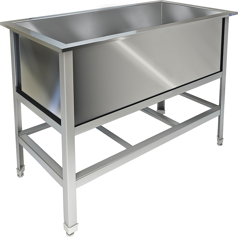 Моечная ванна Техно-ТТ ВМ-11/1000 используется на предприятиях общественного питания и торговли для мытья и ополаскивания продуктов, посуды и различного инвентаря. Модель с закругленными краями оснащена регулируемыми по высоте ножками, что позволяет компенсировать неровности пола. Сварной каркас выполнен из металлического уголка толщиной 2 мм, покрытого порошковой краской, сварная мойка - из нержавеющей стали AISI 304 толщиной 0,8 мм, выпуск - из нержавеющей стали.