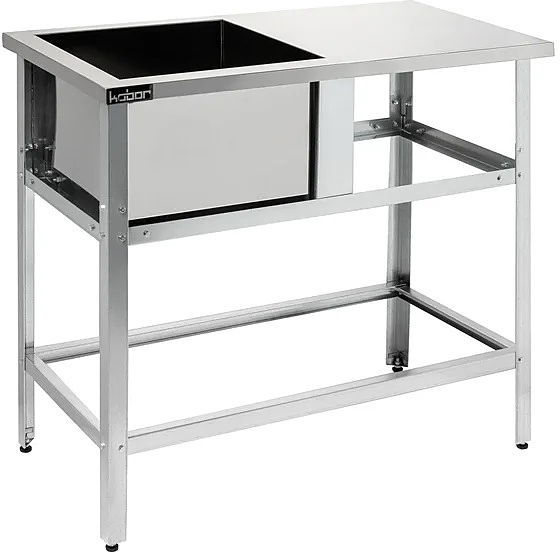 Емкость ванны Кобор ВМСР/1-100/53 выполнена из высококачественной нержавеющей стали. Технология сварки швов ванны обеспечивает не только герметичность соединения, но и прочность конструкции. Ножки изготовлены в виде уголка 40х40 мм из оцинкованной стали и регулируются по высоте, что помогает избежать неустойчивости рабочей конструкции.