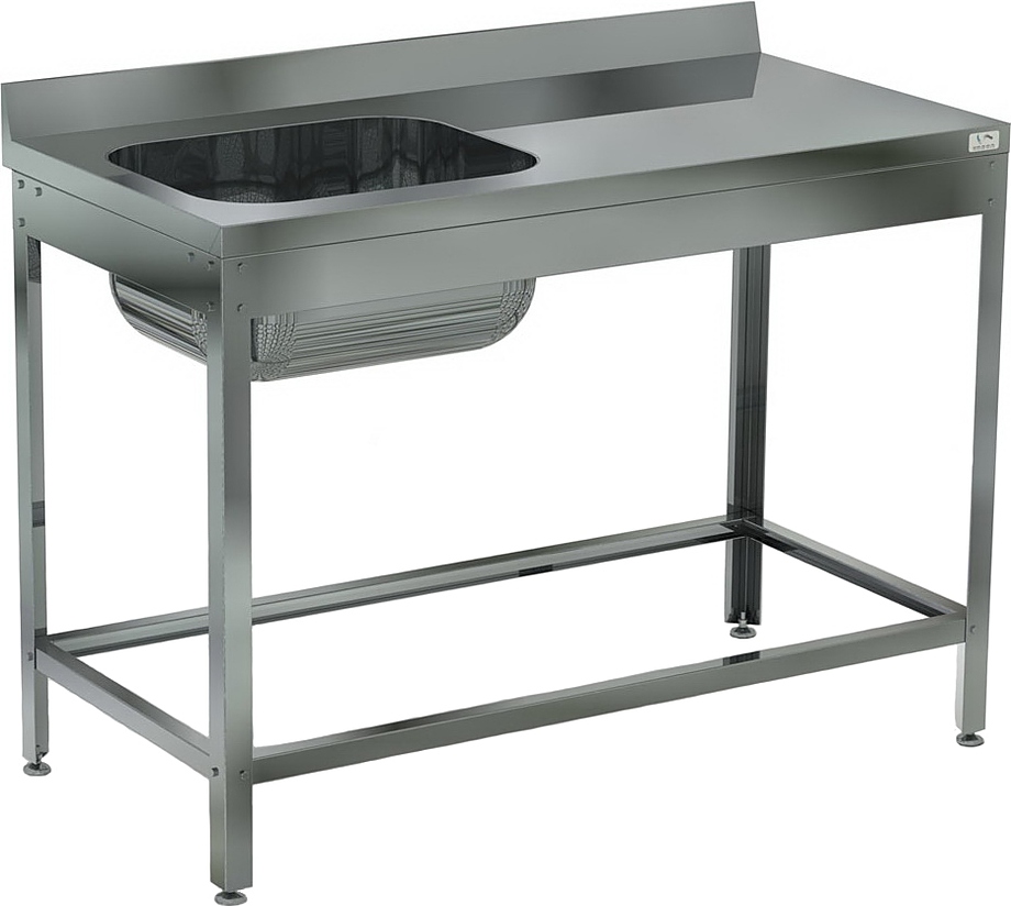 Емкость ванны Кобор ВМЦР/1-120/60 Л/П выполнена из высококачественной пищевой нержавеющей стали, имеет подогнутую кромку для предотвращения травмирования рабочего персонала. Ножки изготовлены в виде уголка 40х40 мм из оцинкованной стали и регулируются по высоте, что помогает избежать наклона рабочей поверхности. Во избежание попадания воды и грязи у ванной имеется борт высотой 70 мм.