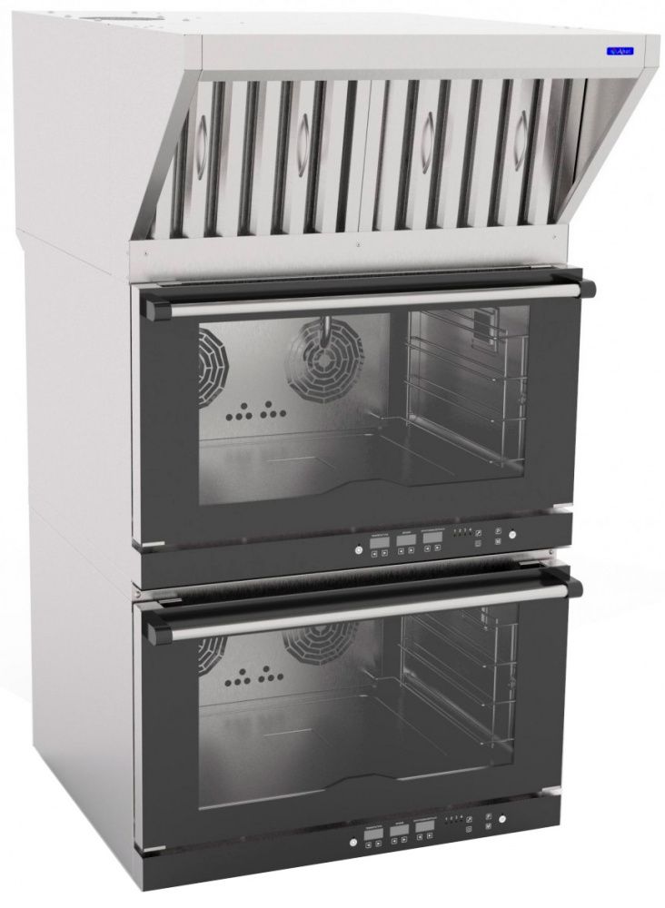 • Зонт не занимает полезное кухонное пространство, так как устанавливается на крышу конвекционной печи.