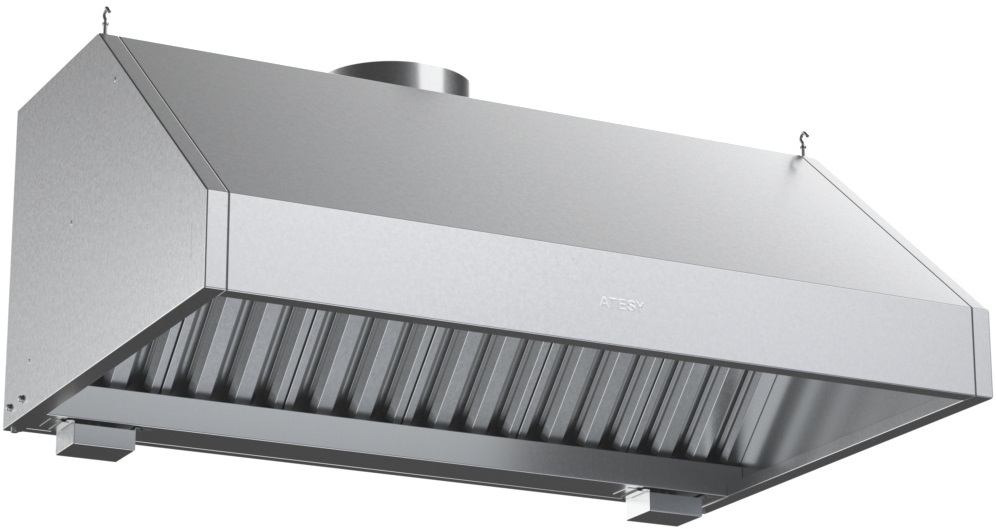 Зонт вытяжной ATESY ЗВН-С-1-800.800.500-02 используется на предприятиях общественного питания, торговли и пищевых производствах для очистки воздуха от различных паров, дыма, жира и утилизации продуктов горения. В модели предусмотрен жиросборник и легкосъемные лабиринтные фильтры. Материал корпуса и материал лабиринтных фильтров - нержавеющая сталь AISI 430.