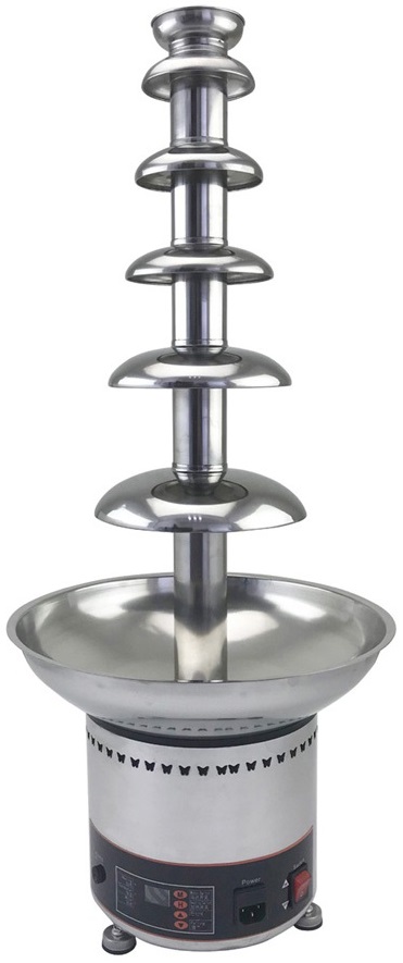 Шоколадный фонтан Kocateq DHC6FDC предназначен для нагрева шоколада и поддержания в горячем состоянии на предприятиях общественного питания, торговли и пищевых производствах. Модель оснащена электронным управлением, термостатом, кнопкой вкл/выкл и регулируемыми ножками. Материал корпуса, шнека и уровней - высококачественная нержавеющая сталь AISI 304.