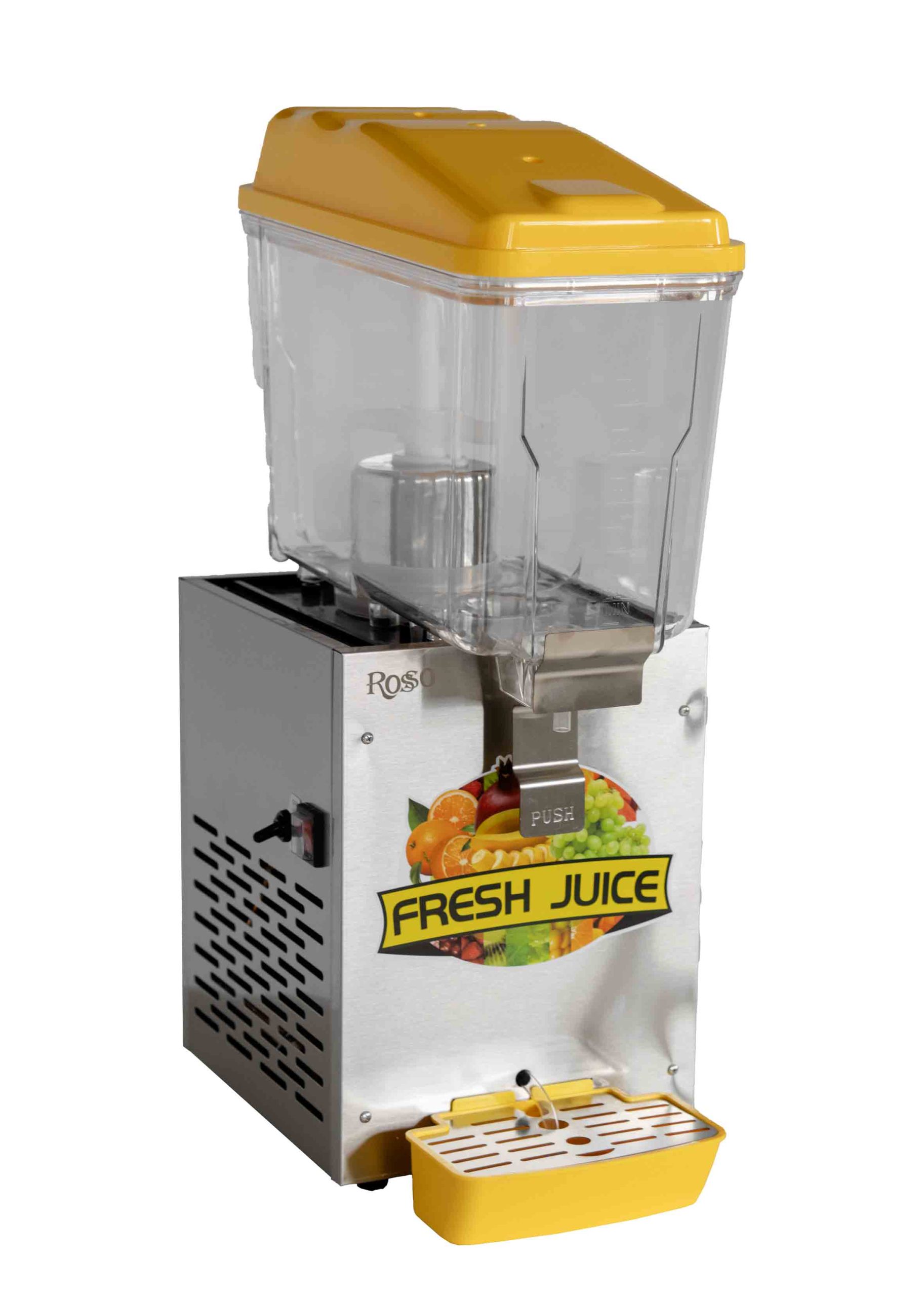 Сокоохладитель Rosso JD-161A используется на предприятиях общественного питания, торговли и пищевых производствах для демонстрации и охлаждения различных сокосодержащих напитков. Сокоохладитель оснащен крышкой и каплесборником. Материал корпуса - нержавеющая сталь, материал резервуара - пластик.