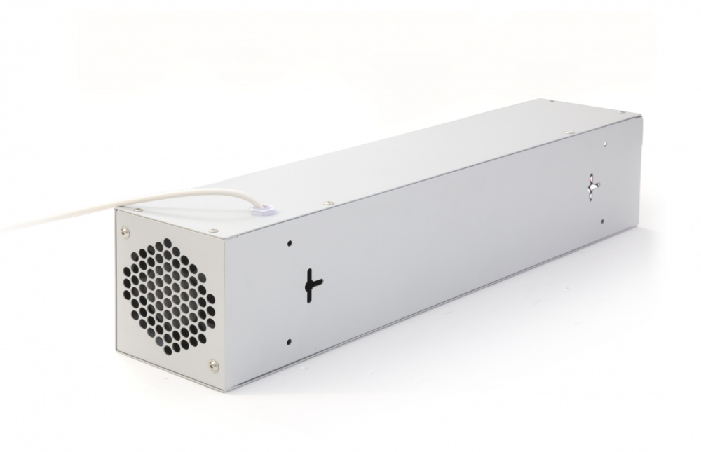- Движение воздуха через рециркулятор обеспечивается мощным осевым вентилятором, рассчитанным на непрерывную работу в течение 24 часов