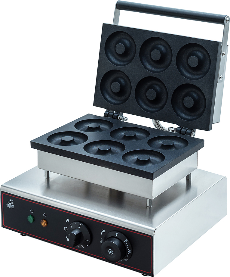 Аппарат для пончиков Crazy Pan CP-WFM16 DONUT используется на предприятиях общественного питания и торговли. Модель оснащена терморегулятором, 2 ТЭНами и звуковым таймером на 5 минут. Корпус выполнен из нержавеющей стали, рабочая поверхность - из чугуна с антипригарным покрытием.