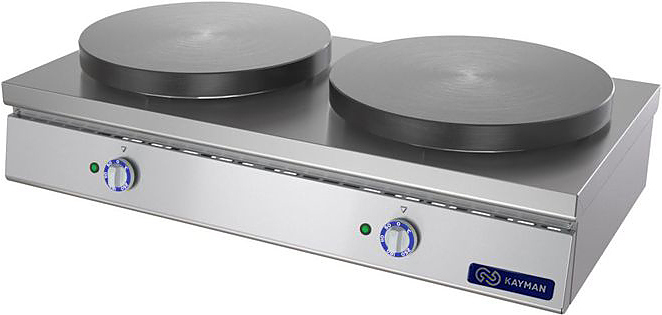 Блинница KAYMAN БЭ-2-400 А используется на предприятиях общественного питания, торговли и пищевых производствах для жарки блинов. Модель оснащена регуляторами температуры и ТЭНом. Материал корпуса - высококачественная нержавеющая сталь, материал жарочной поверхности - чугун.