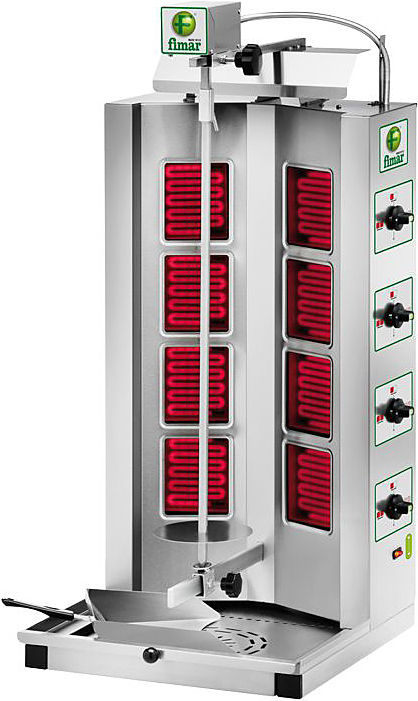 Гриль для шаурмы FIMAR GYR 80 используется на предприятиях общественного питания и торговли для приготовления мясной начинки. Модель оснащена 3 уровнями мощности, инфракрасными ТЭНами с керамическим покрытием и жаростойким защитным стеклом. Корпус, шампур, лопатка и поддон для сбора отходов выполнены из нержавеющей стали.