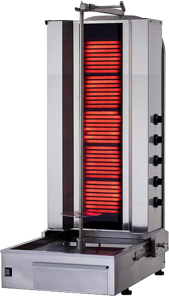 Гриль Kalitegaz KLG 172 используется на предприятиях общественного питания, торговли и пищевых производствах для обжарки большого количества различных видов мяса и птицы. Модель оснащена вертикальным шампуром, располагающимся в оптимальной близости от нагревательного элемента, 5 ТЭНами и стеклокерамическим покрытием. Материал корпуса - нержавеющая сталь AISI 304, материал сушильного листа и поддона для сбора масла - нержавеющая сталь.