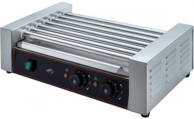 Роликовый гриль Crazy Pan CP-HDG07 предназначен для быстрого равномерного обжаривания сосисок, сарделек и колбасок на предприятиях общественного питания и торговли. Модель оснащена 2 терморегуляторами для независимой регулировки температуры в 2 зонах, 7 ТЭНами и поддоном для жира. Корпус и ролики выполнены из нержавеющей стали.