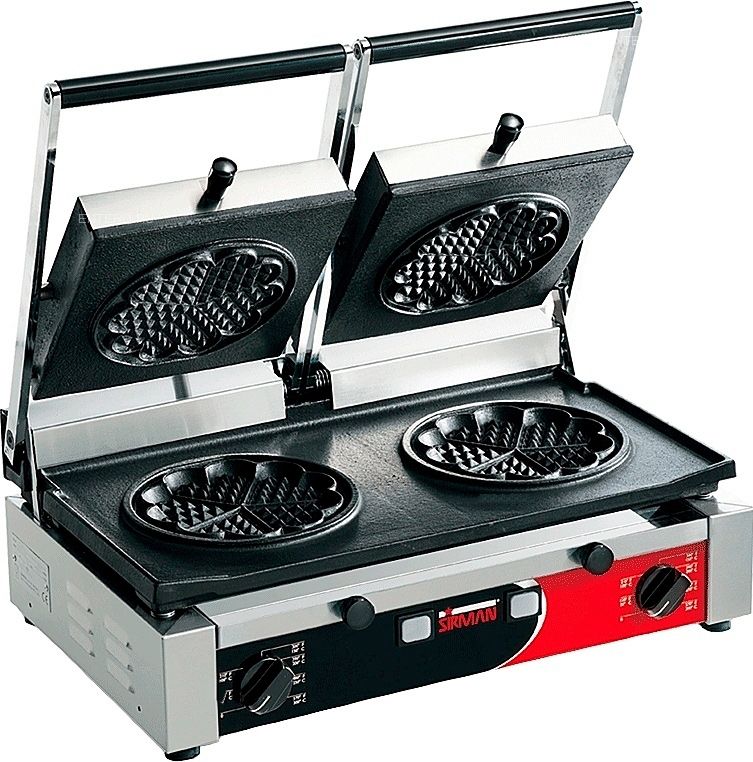 Вафельница Sirman PD WAFER используется на предприятиях общественного питания и торговли для выпекания бельгийских и венских вафель в форме сердечек. Модель оснащена 2 регулируемыми термостатами, армированными нагревательными элементами и 2 рабочими поверхностями, которые можно регулировать отдельно друг от друга.