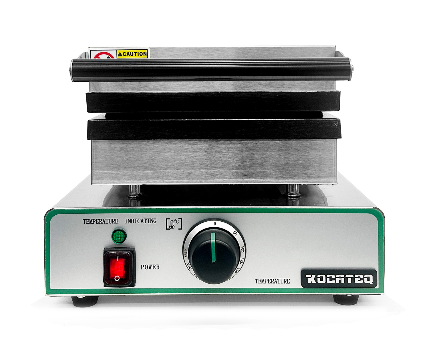 Вафельница Kocateq GH 15WB GL серии Green Line предназначена для выпечки прямоугольных бельгийских вафель на предприятиях общественного питания, торговли и пищевых производствах.Модель с аналоговым управлением, световыми индикаторами, пластиковыми ножками и ьермоизоляционными ручками. Материал корпуса - нержавеющая сталь AISI 201, материал жарочных поверхностей - алюминий с антипригарным покрытием тефлон.