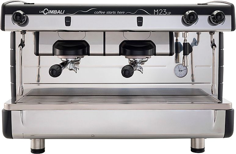 Кофемашина La Cimbali M23 Up C/2 предназначена для приготовления широкого спектра кофейных напитков и чая в кофейнях, барах и ресторанах. Модель оснащена панелью управления с кнопками с LED-подсветкой и поворотными ручками для подачи горячей воды и пара. Корпус и краны подачи пара выполнены из нержавеющей стали.