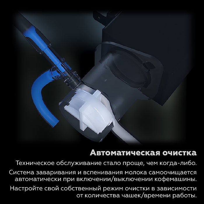 - Автоматическая промывка кофейной и молочной систем при включении/выключении кофемашины