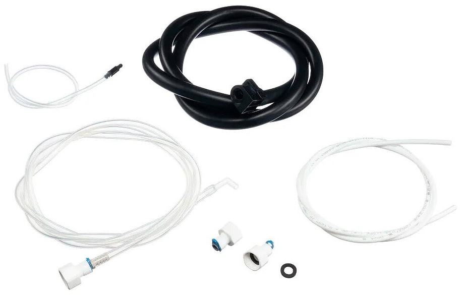 В комплекте ключ, молочная трубка с переводчиком, трубка для подключения к водопроводу, соединитель водопроводной трубки и комплект для подключения к бутыли.