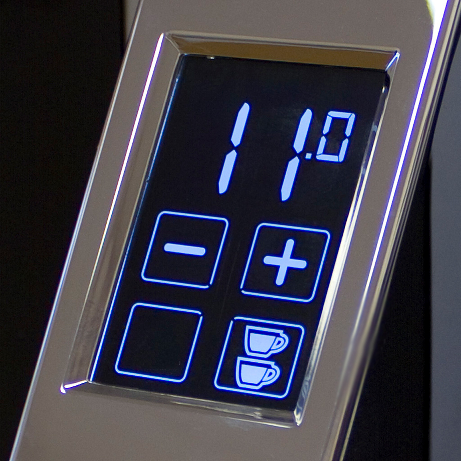 Сенсорная панель управления с дисплеем, счетчик порций, система настройки помола. Жернова выполнены из закалённой стали. 3 режима работы (2 программируемых, 1 непрерывный режим по таймеру). Высокоскоростная система дозирования, система бесступенчатой микрометрической регулировки помола, запатентованная Eureka,