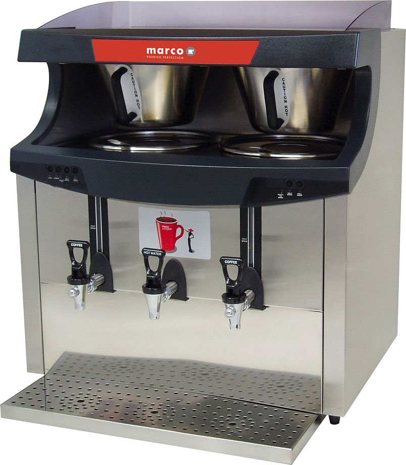 Кофеварка Marco Maxibrew-Twin используется на предприятиях общественного питания и торговли, в офисах и гостиницах для профессионального заваривания кофе. Модель оснащена 2 бойлерами для кофе краном для горячей воды. Залив воды осуществляется автоматически. Корпус выполнен из нержавеющей стали.