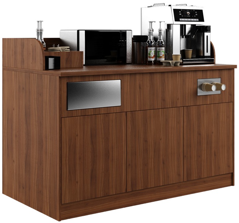 Кофейная станция используется на предприятиях общественного питания, торговли и пищевых производствах для приготовления и раздачи кофейных напитков. Материал корпуса - ЛДСП толщиной 16 и 25 мм.