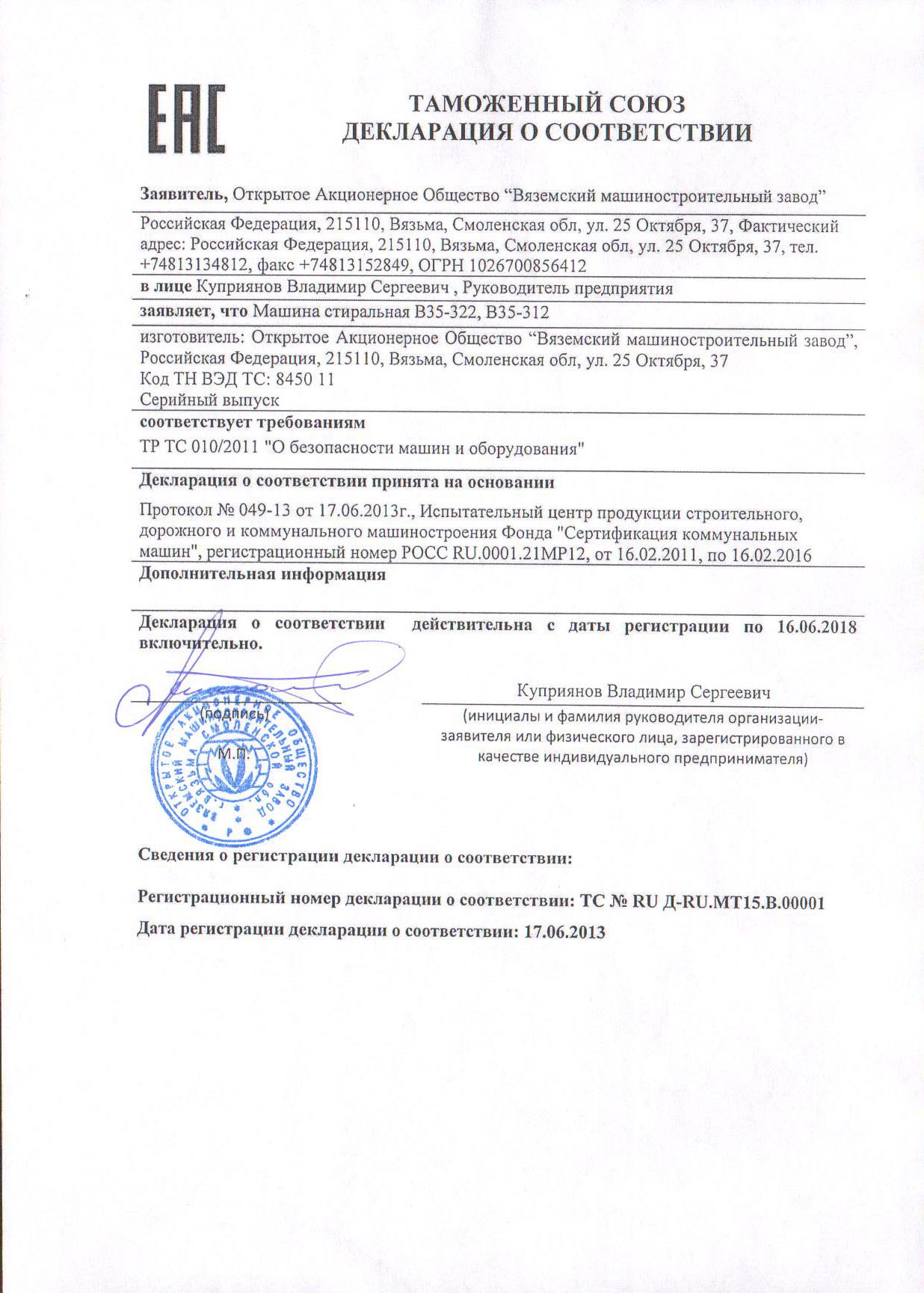 Стиральная машина Вязьма В-35-312 используется в прачечных образовательных, оздоровительных заведениях, производственных предприятиях, в поликлиниках, гостиницах, детских садах, общежитиях, больницах, роддомах и воинских частях для стирки, полоскания и отжима белья, ткани и одежды. Благодаря низкому уровню остаточной влажности, исключается необходимость использования центрифуги. Внутренний и наружный барабаны изготовлены из нержавеющей стали, облицовки - из окрашенной стали.