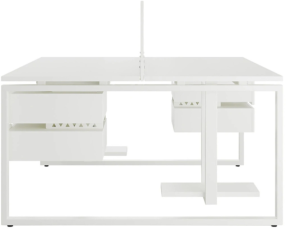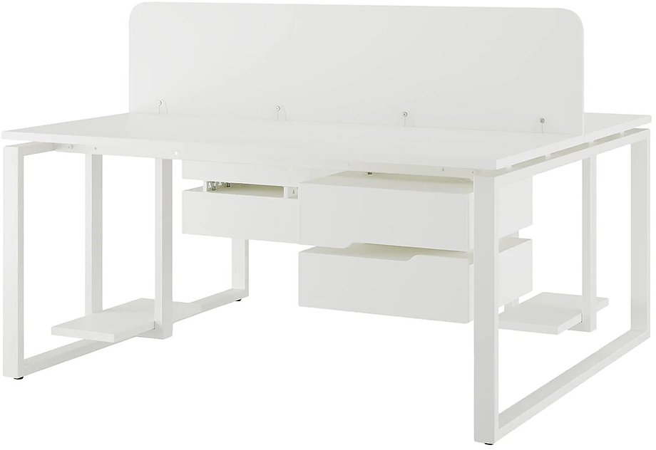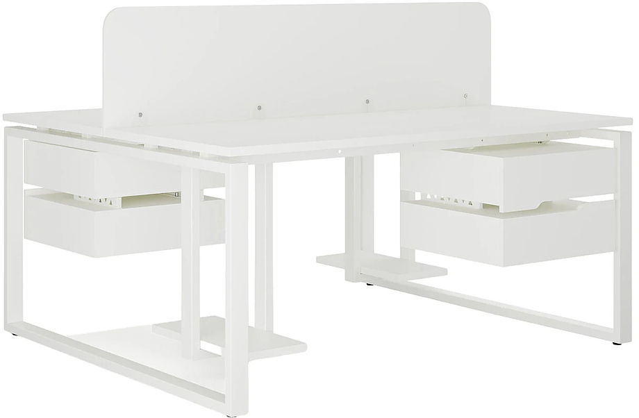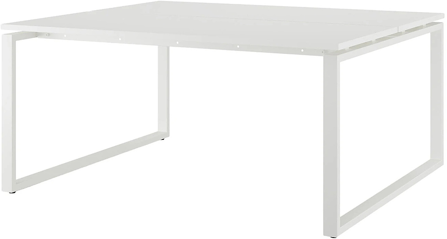 Офисный стол Кобор O1/2-140/140 white/premiuml предназначен для двух рабочих мест и идеально подходит для офисов и кабинетов руководителей. Модель оснащена О-образными опорами. Материал столешницы - прочный ЛДСП толщиной 25 мм, усиленная снизу металлическим каркасом, материал опор и каркаса - окрашенный металл.