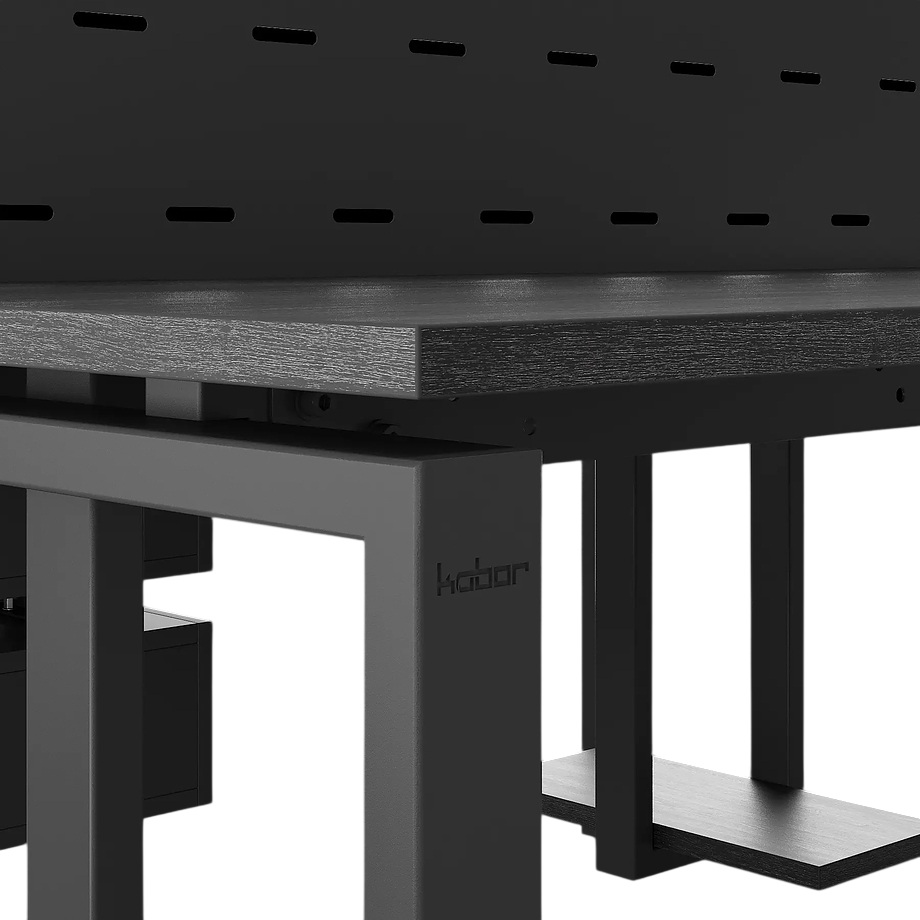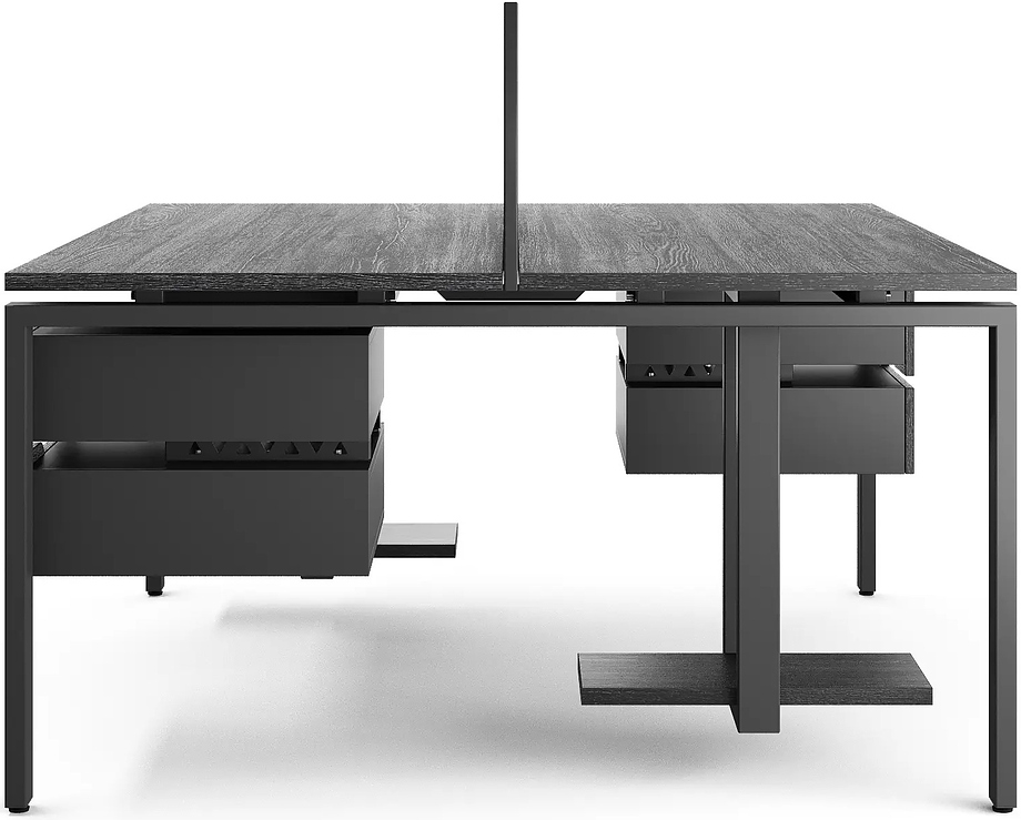 Офисный стол Кобор P/2-80/120 black/wood предназначен для двух рабочих мест и идеально подходит для офисов и кабинетов руководителей. Модель оснащена П-образными опорами. Материал столешницы - прочный ЛДСП толщиной 25 мм, усиленная снизу металлическим каркасом, материал опор и каркаса - окрашенный металл.