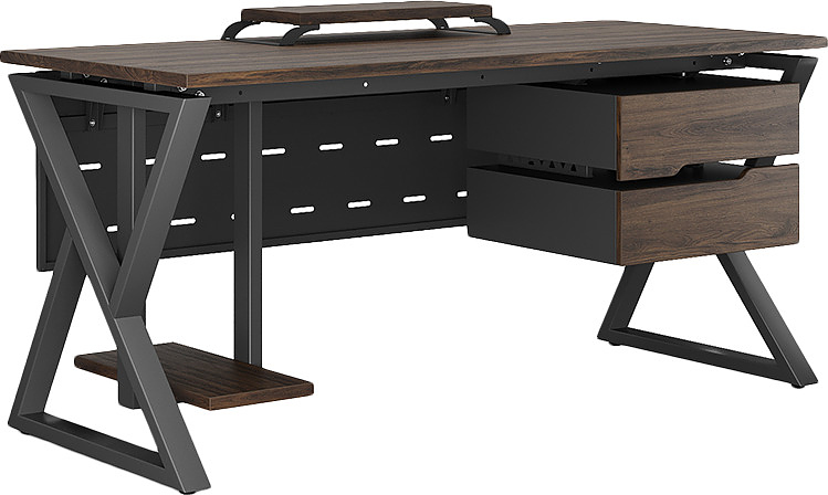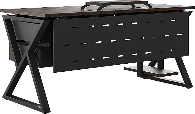Офисный стол КОБОР W-120/60 black/charlston используется в офисных помещениях и кабинетах руководителей. Модель оснащена W-образными опорами. Материал столешницы - прочный ЛДСП толщиной 25 мм, усиленная снизу металлическим каркасом, материал опор - окрашенный металл.