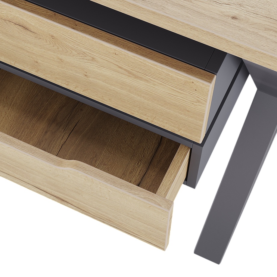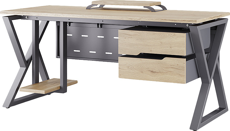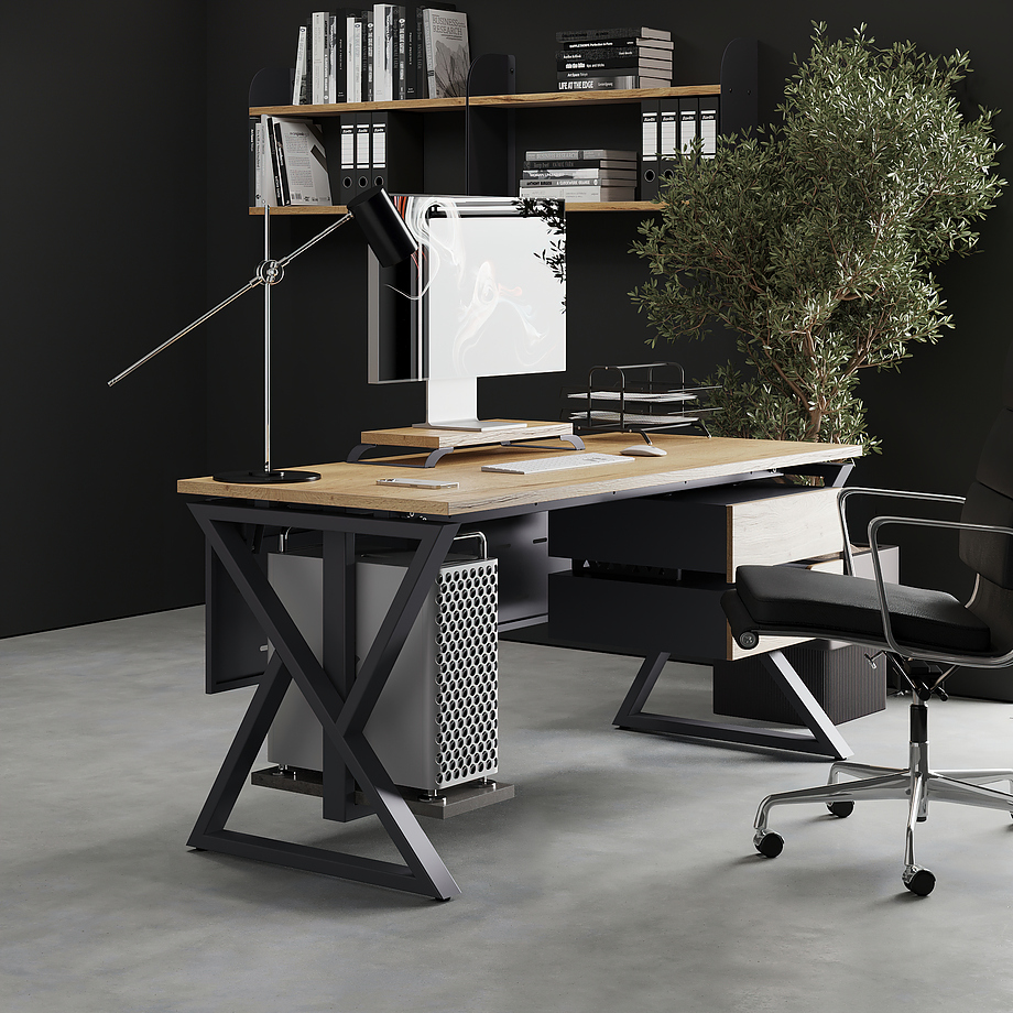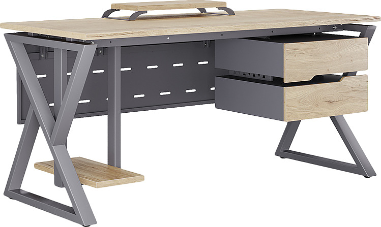 Офисный стол КОБОР W-140/70 graphite/natural используется в офисных помещениях и кабинетах руководителей. Модель оснащена W-образными опорами. Материал столешницы - прочный ЛДСП толщиной 25 мм, усиленная снизу металлическим каркасом, материал опор - окрашенный металл.