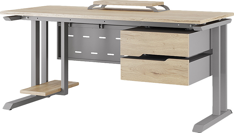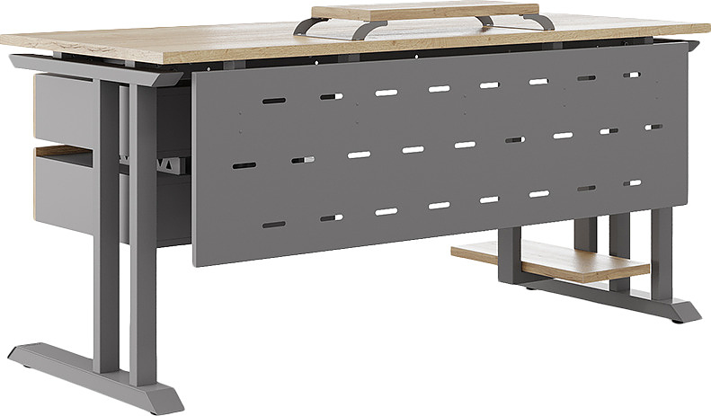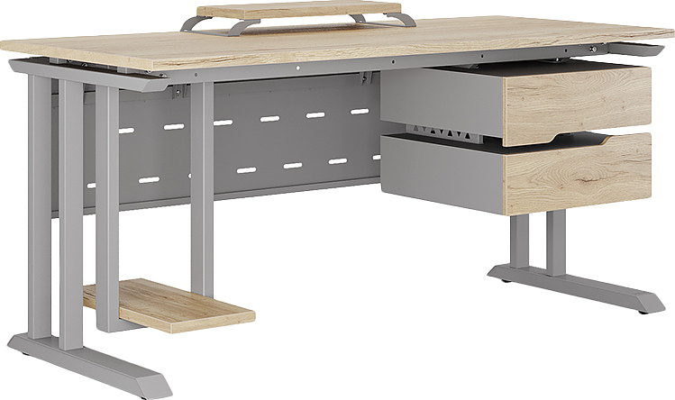 Офисный стол КОБОР L1-140/70 aluminum/natural используется в офисных помещениях и кабинетах руководителей. Модель оснащена L-образными опорами. Материал столешницы - прочный ЛДСП толщиной 25 мм, усиленная снизу металлическим каркасом, материал опор - окрашенный металл.