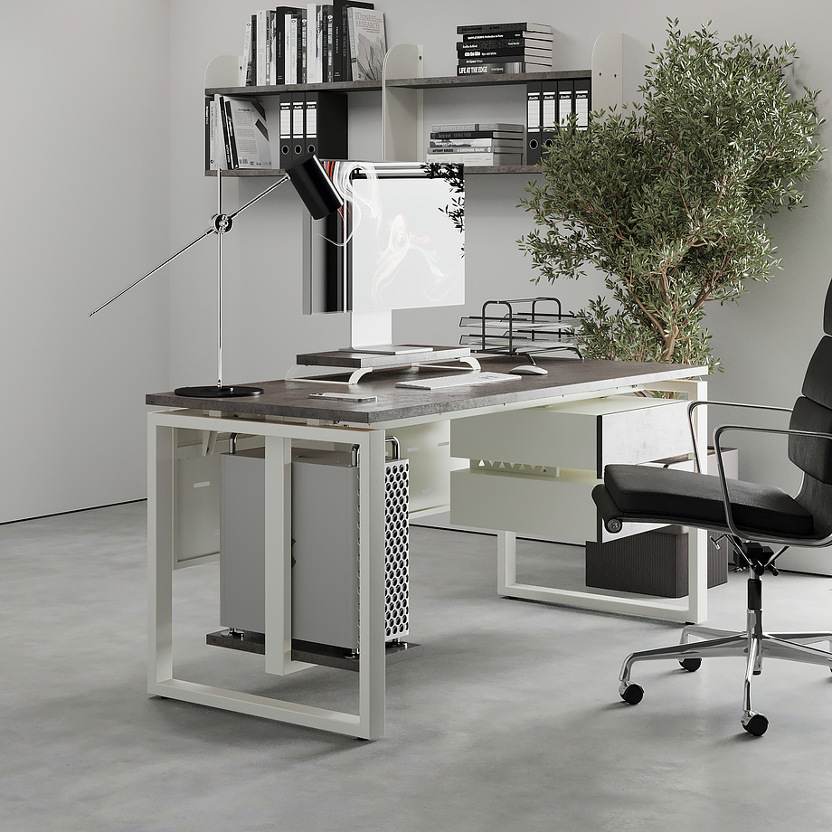 Офисный стол КОБОР O1-140/70 white/chicago используется в офисных помещениях и кабинетах руководителей. Модель оснащена О-образными опорами. Материал столешницы - прочный ЛДСП толщиной 25 мм, усиленная снизу металлическим каркасом, материал опор - окрашенный металл.