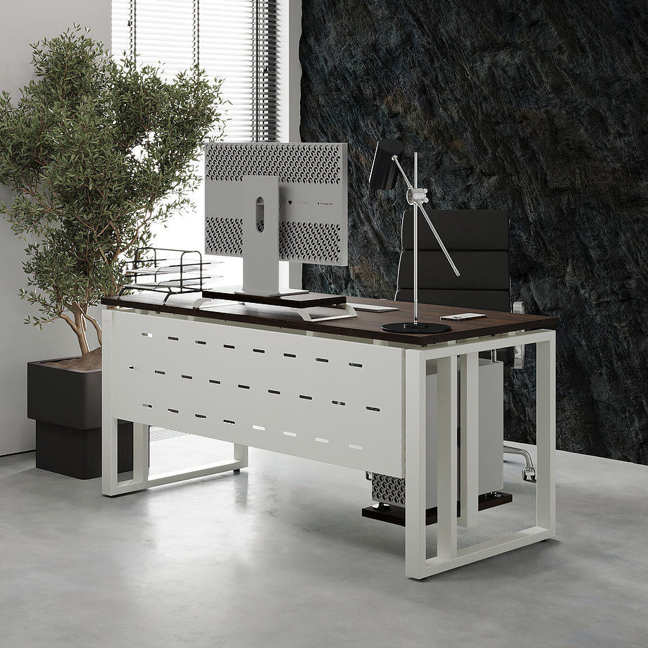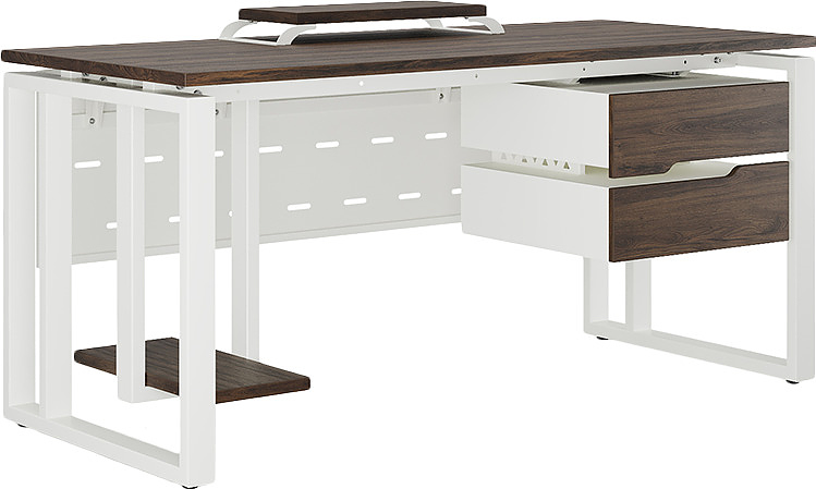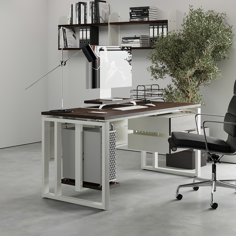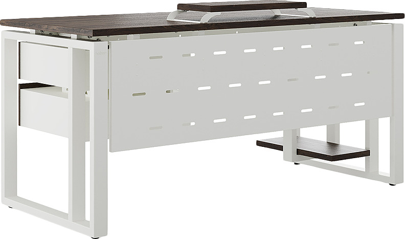 Офисный стол КОБОР O2-120/60 white/charlston используется в офисных помещениях и кабинетах руководителей. Модель оснащена О-образными опорами и усиленной вертикальной балкой. Материал столешницы - прочный ЛДСП толщиной 25 мм, усиленная снизу металлическим каркасом, материал опор - окрашенный металл.