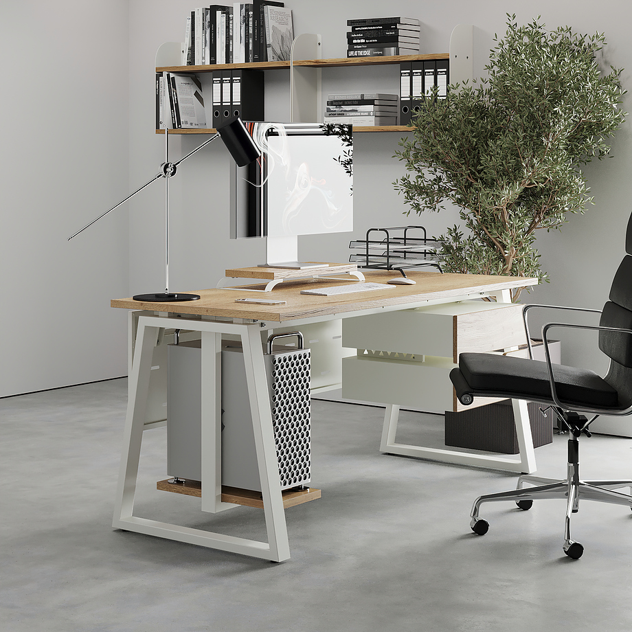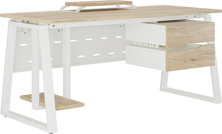 Офисный стол КОБОР TR-120/60 white/natural используется в офисных помещениях и кабинетах руководителей. Модель оснащена трапециообразными опорами. Материал столешницы - прочный ЛДСП толщиной 25 мм, усиленная снизу металлическим каркасом, материал опор - окрашенный металл.
