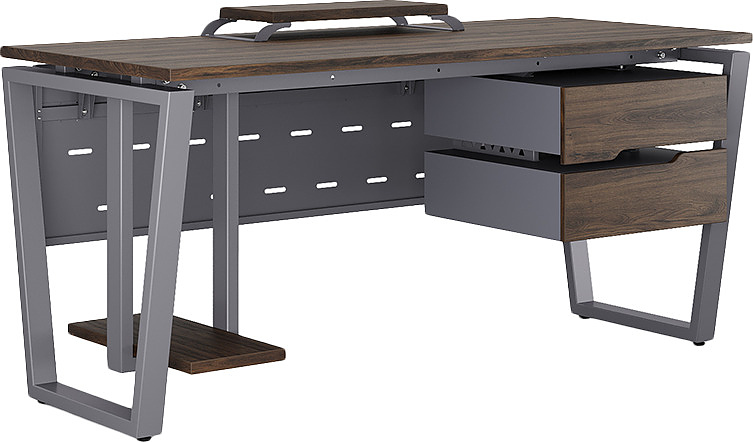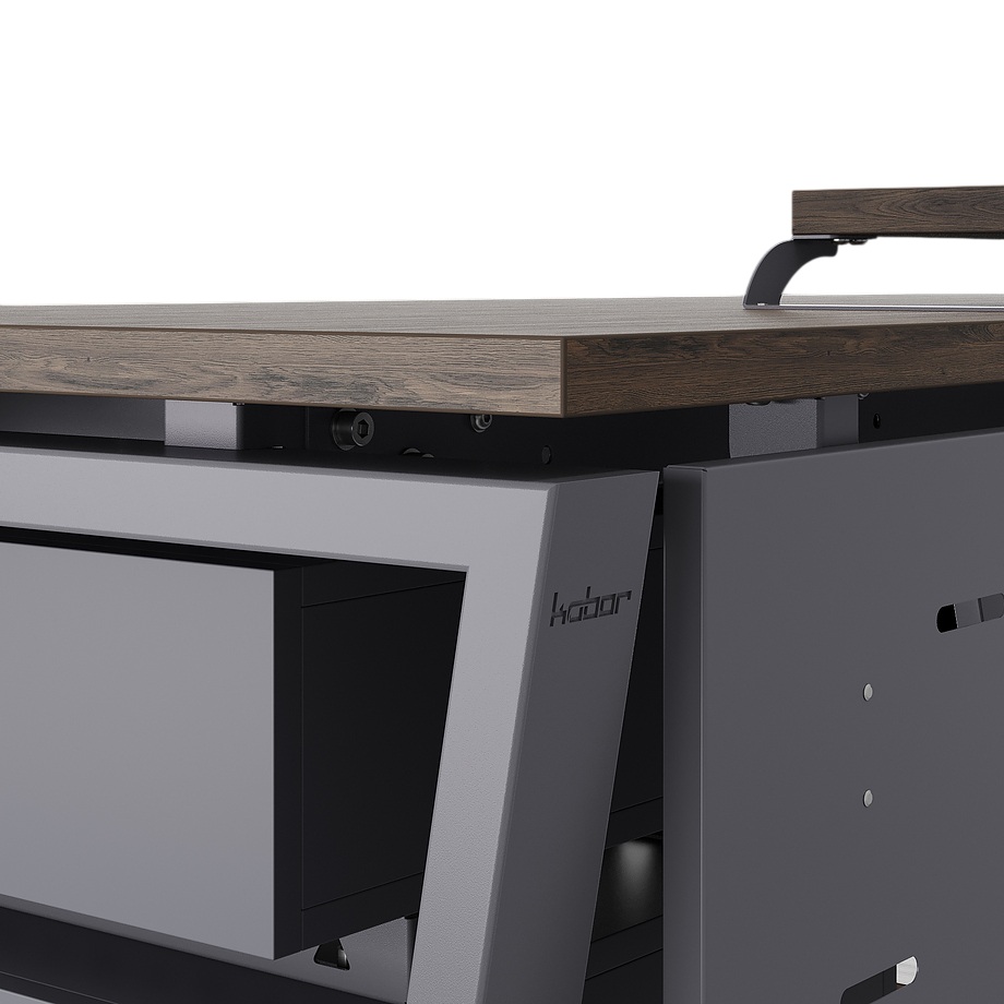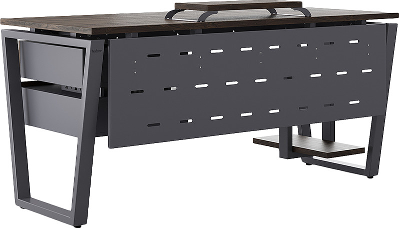 Офисный стол КОБОР OTR-120/60 graphite/charlston используется в офисных помещениях и кабинетах руководителей. Модель оснащена опорами в форме обратной трапеции. Материал столешницы - прочный ЛДСП толщиной 25 мм, усиленная снизу металлическим каркасом, материал опор - окрашенный металл.